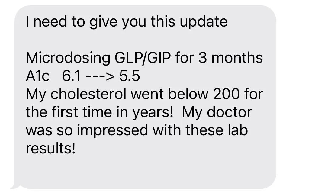 My addictive brain kept me prisoner. Then I started GLP-1 microdose peptide therapy. Day 2—Saturday after my first Thursday injection—I realized: I wasn't thinking about food 24/7 anymore. Even if I didn't lose one pound, it was worth every penny just to shut that noise.